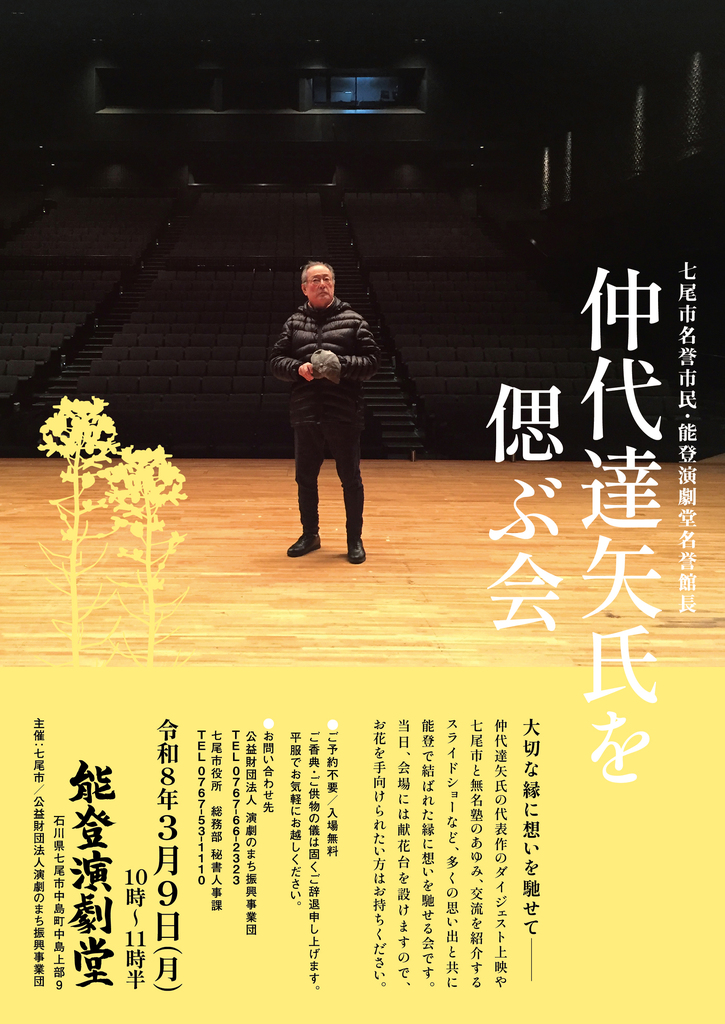 仲代達矢氏率いる無名塾と七尾市中島町との交流により、1995年(平成7年)5月12日に誕生した演劇専用のホールです。